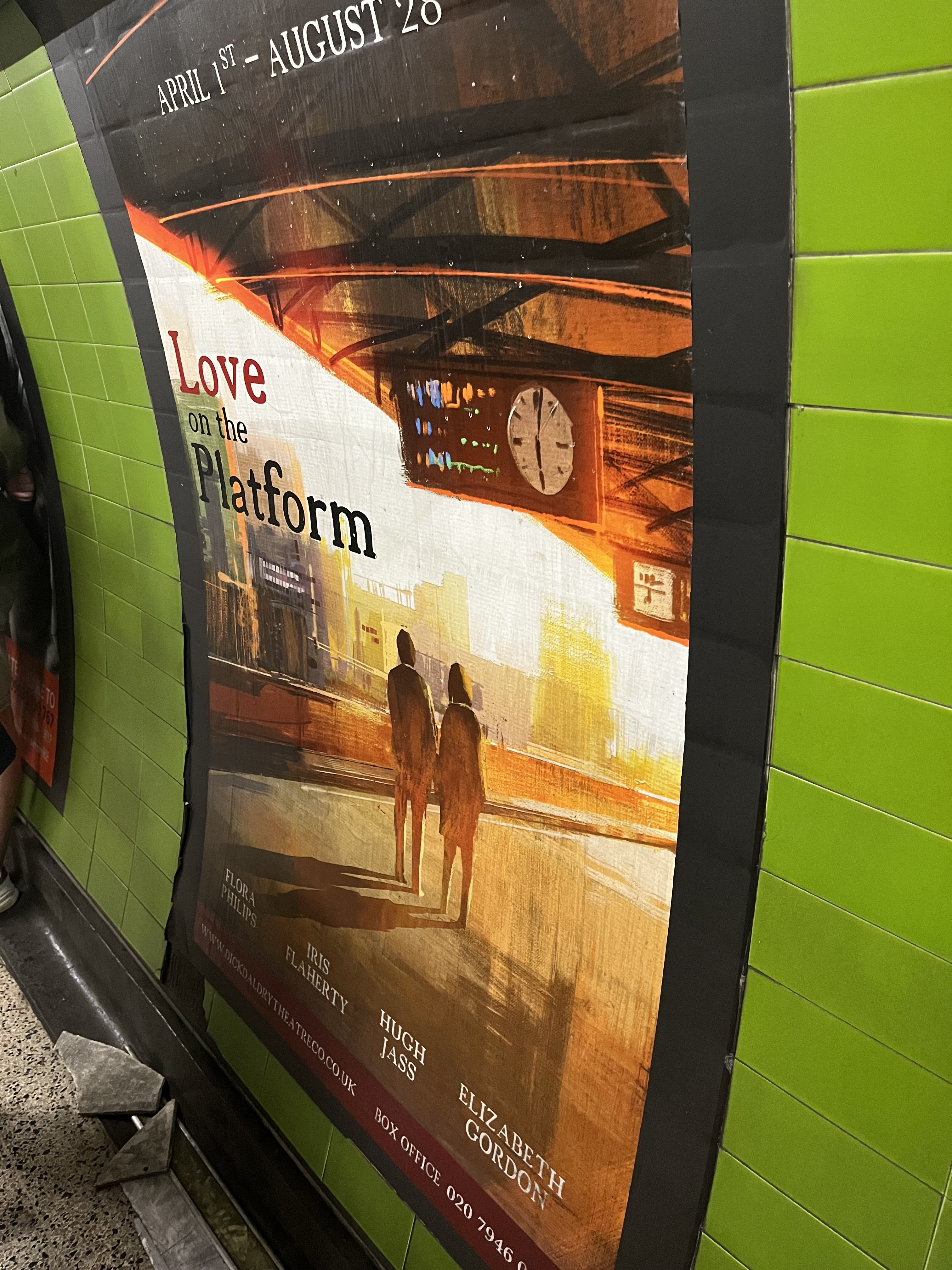 The platform looks perfectly ordinary, except all the posters are fake – at a glance they look fairly normal but there are clues in the details.