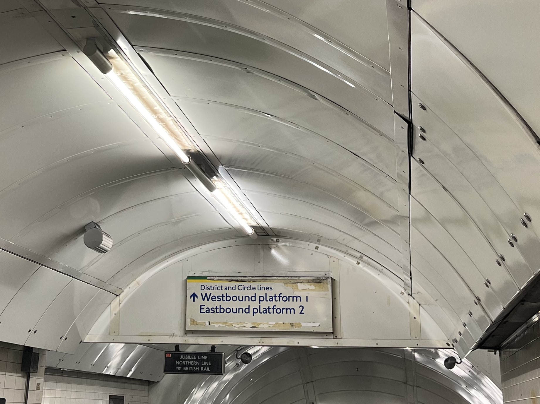 The first stop was through an unassuming door into an escalator shaft to the Jubilee Line. The line originally terminated at Charing Cross but when it was extended in the 1990s to serve the redeveloped Docklands it was redirected so trains no longer stop at Charing Cross. Unless due to an error a busy train is sent the wrong way leading to lots of confused passengers!